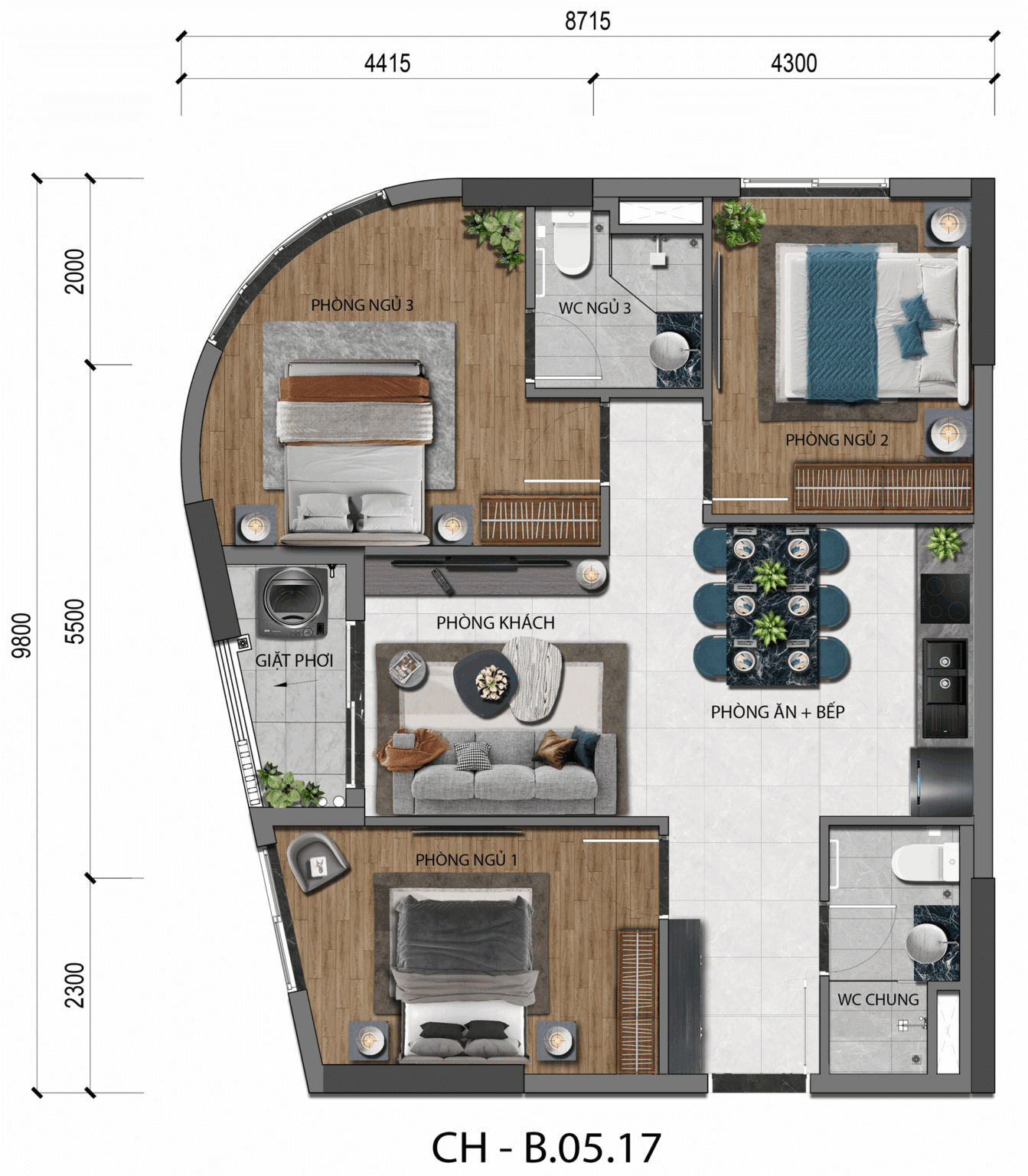 THIẾT KẾ CĂN HỘ 3 PHÒNG NGỦ