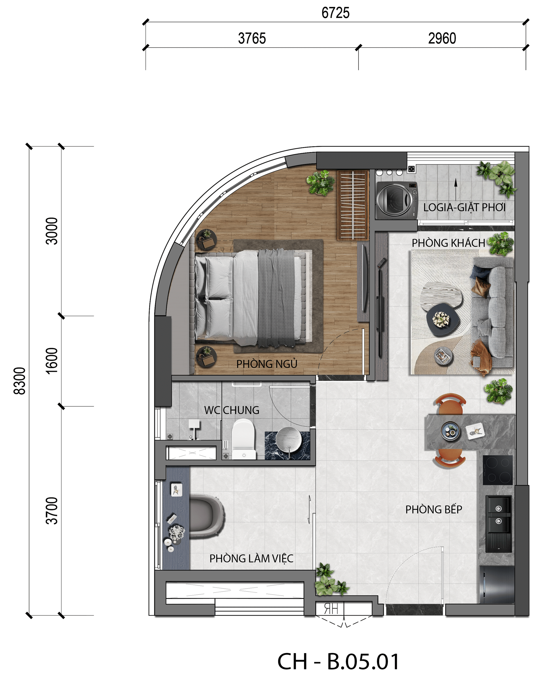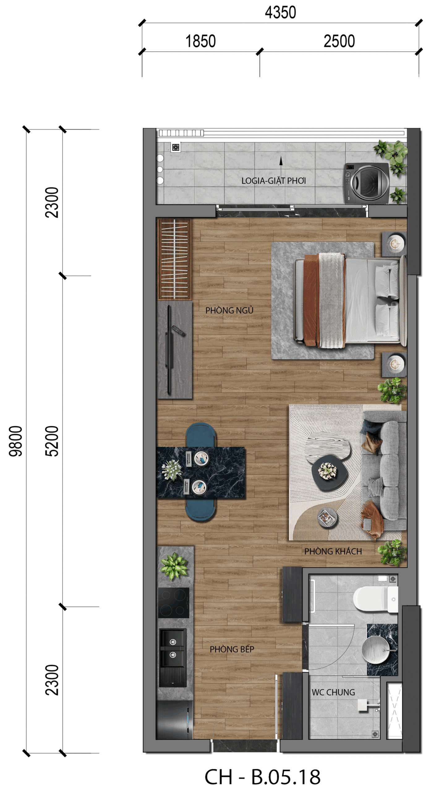 | CĂN 1PN+1/ 1WC | 45,2 – 46,5 – 46,8 – 48,3 – 49 – 52,5m² | 1,6 – 1,8 Tỷ/ căn |