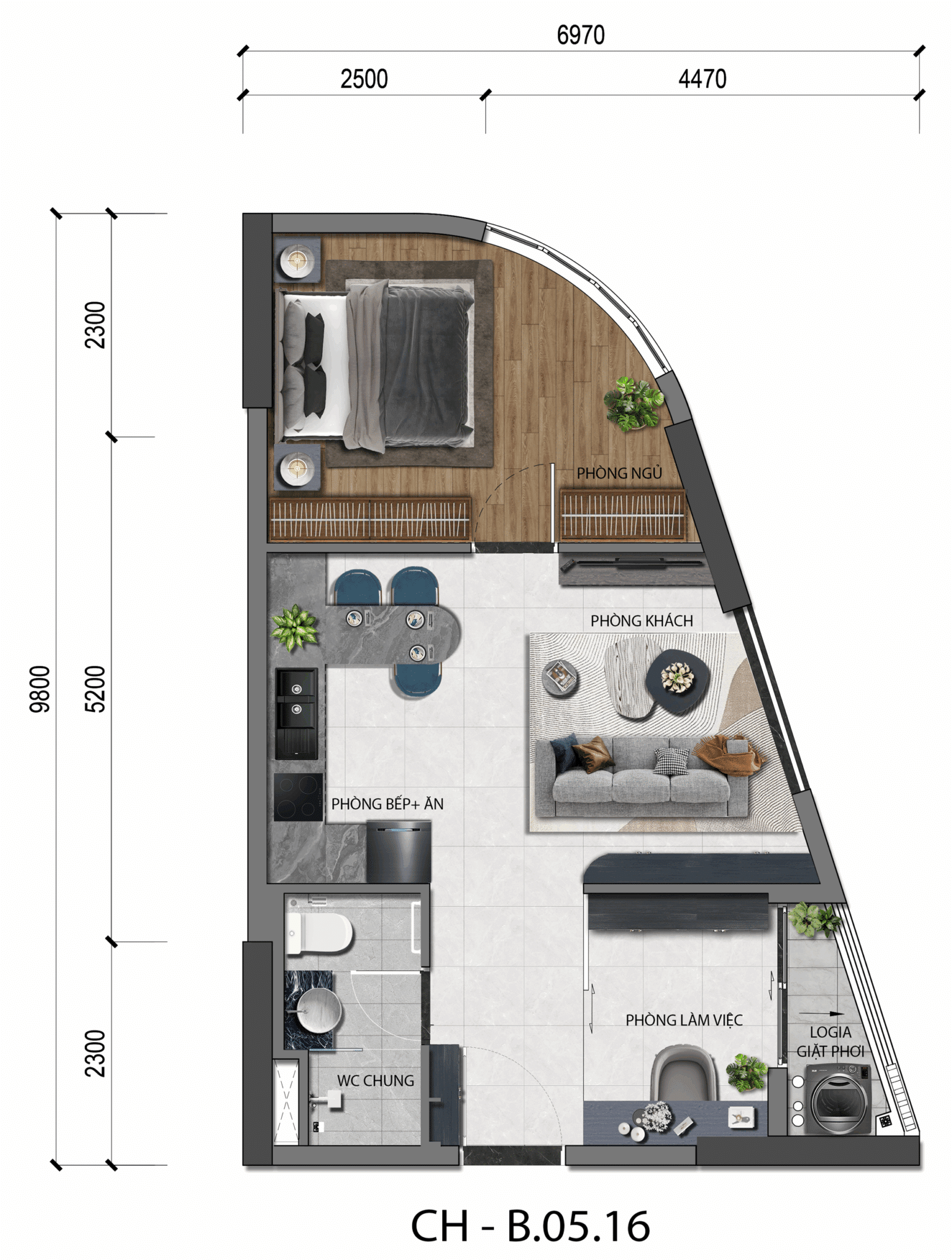 THIẾT KẾ CĂN HỘ 1 PHÒNG NGỦ