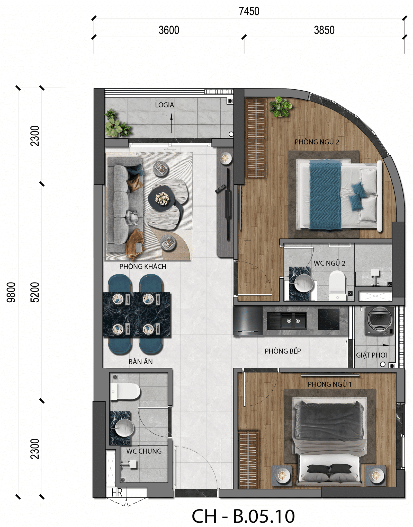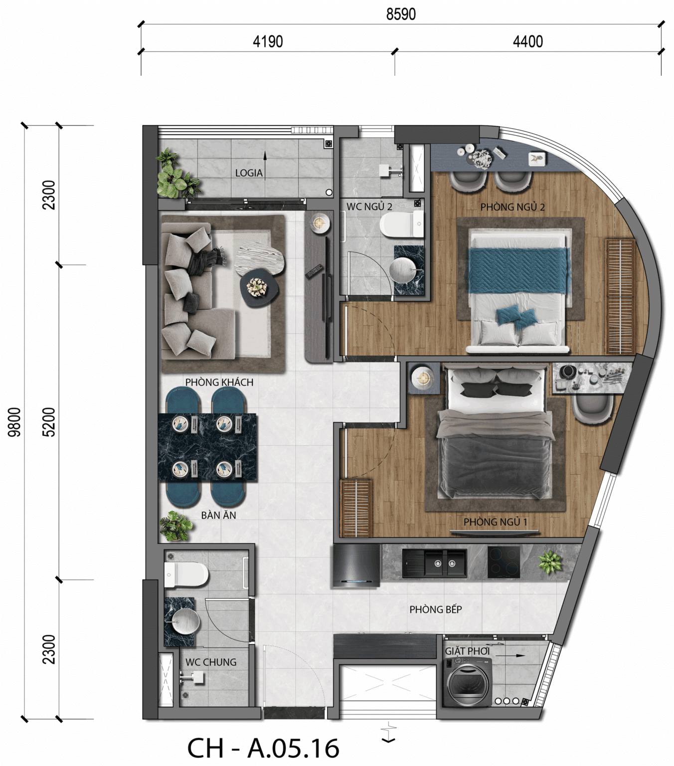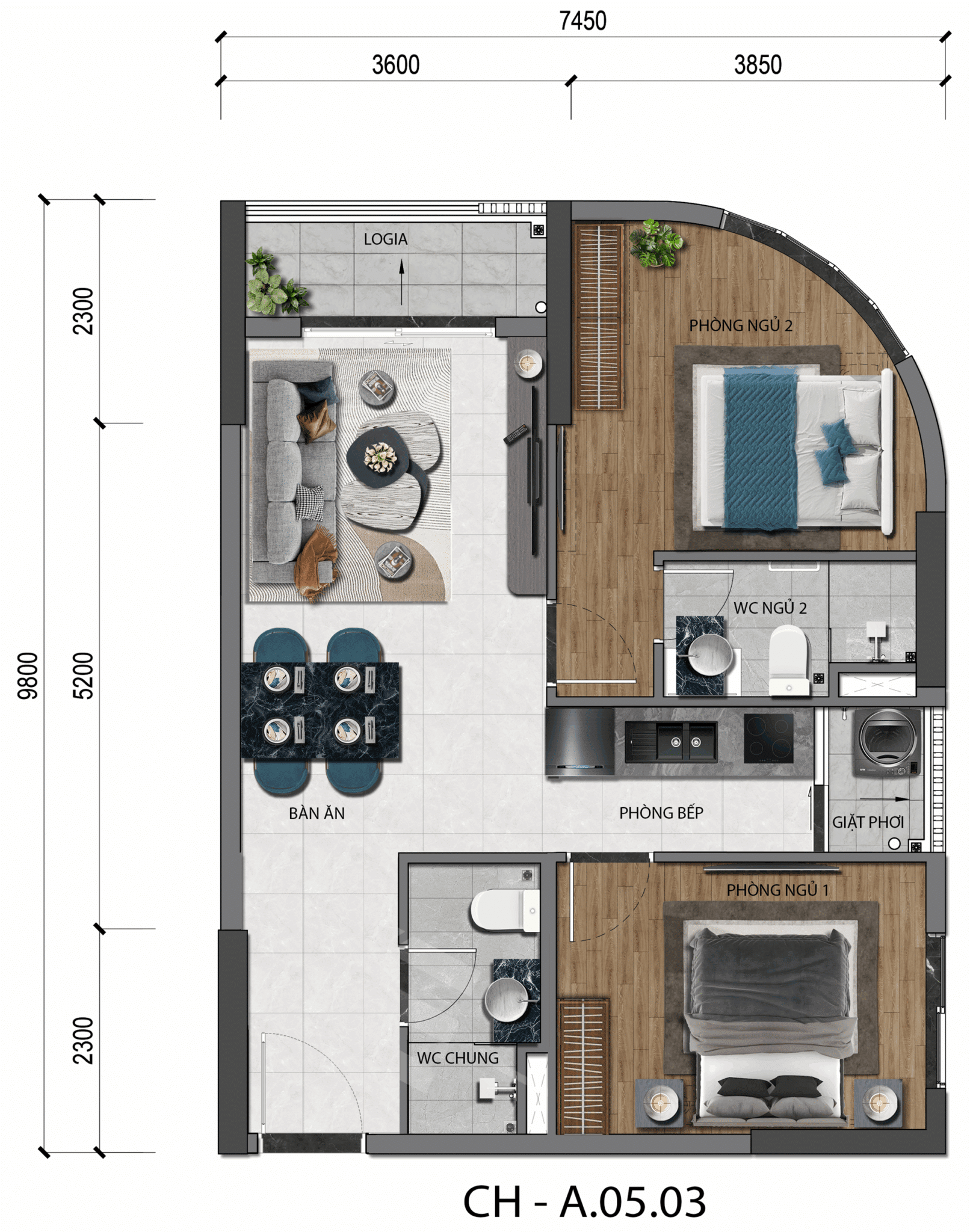 THIẾT KẾ CĂN HỘ 2 PHÒNG NGỦ