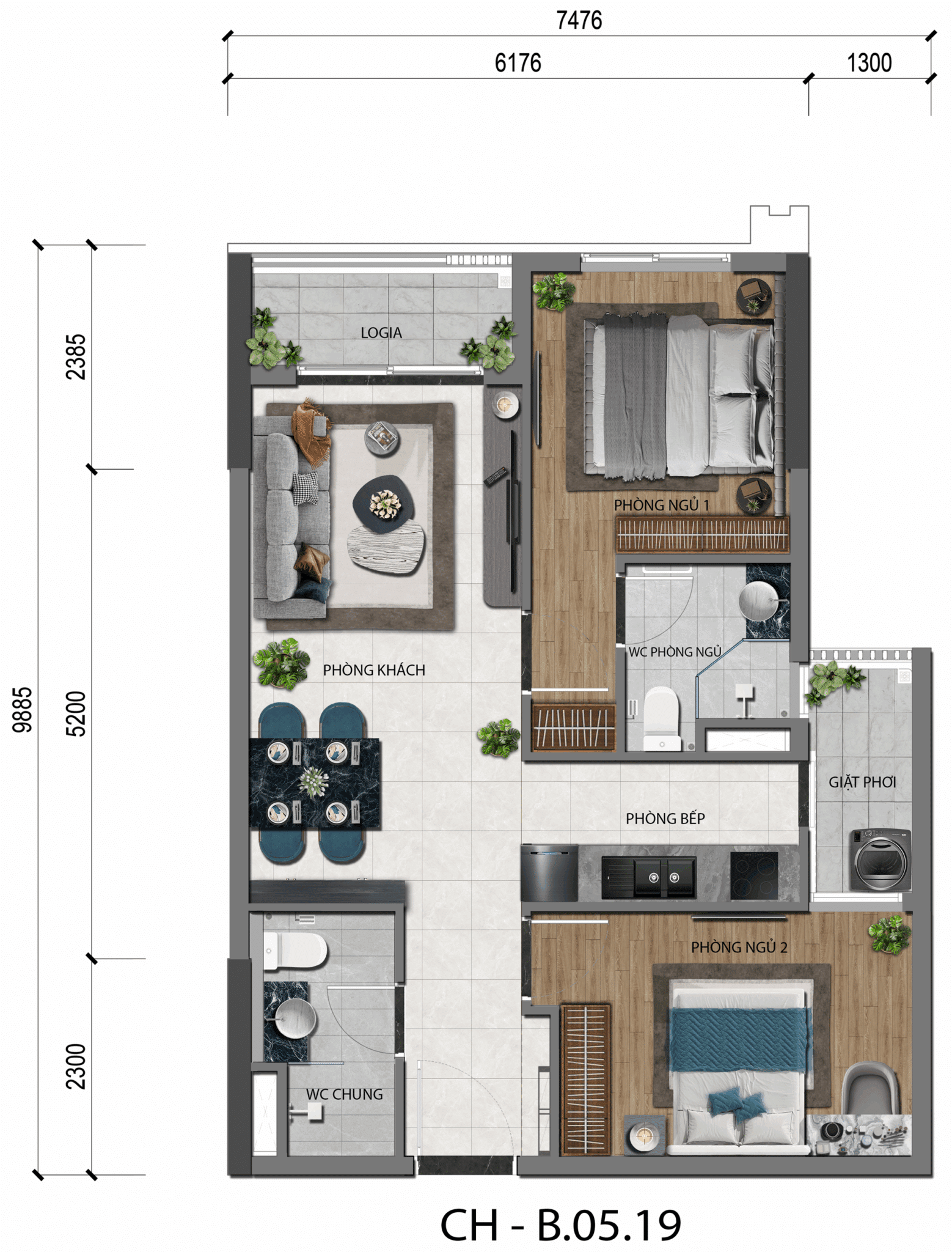 | CĂN 2PN/ 2WC | 65,3 – 67,4 – 69,7 – 70,2m² | 2,3 – 2,5 Tỷ/ căn |