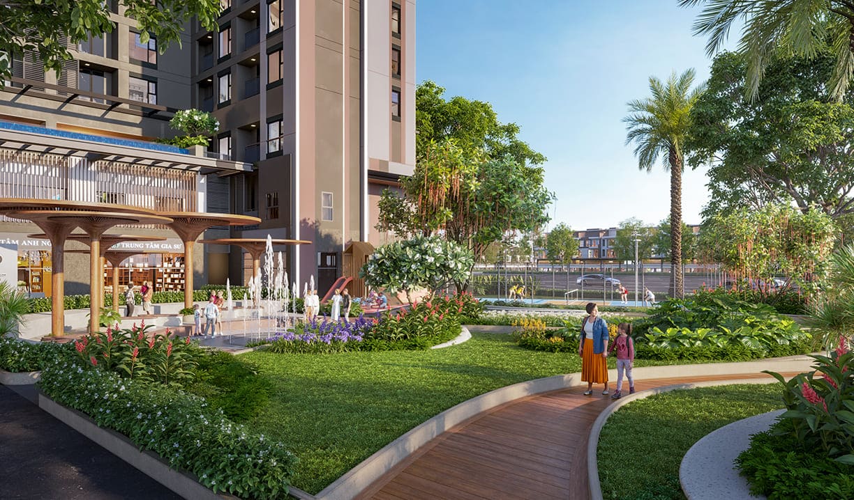 - Tận hưởng cuộc sống xanh: dự án được xây dựng với mật độ thấp chỉ 38.55%, cư dân hòa mình vào thiên nhiên với công viên cây xanh rộng lớn, cà phê sân vườn thoáng mát, và hồ bơi trong xanh.