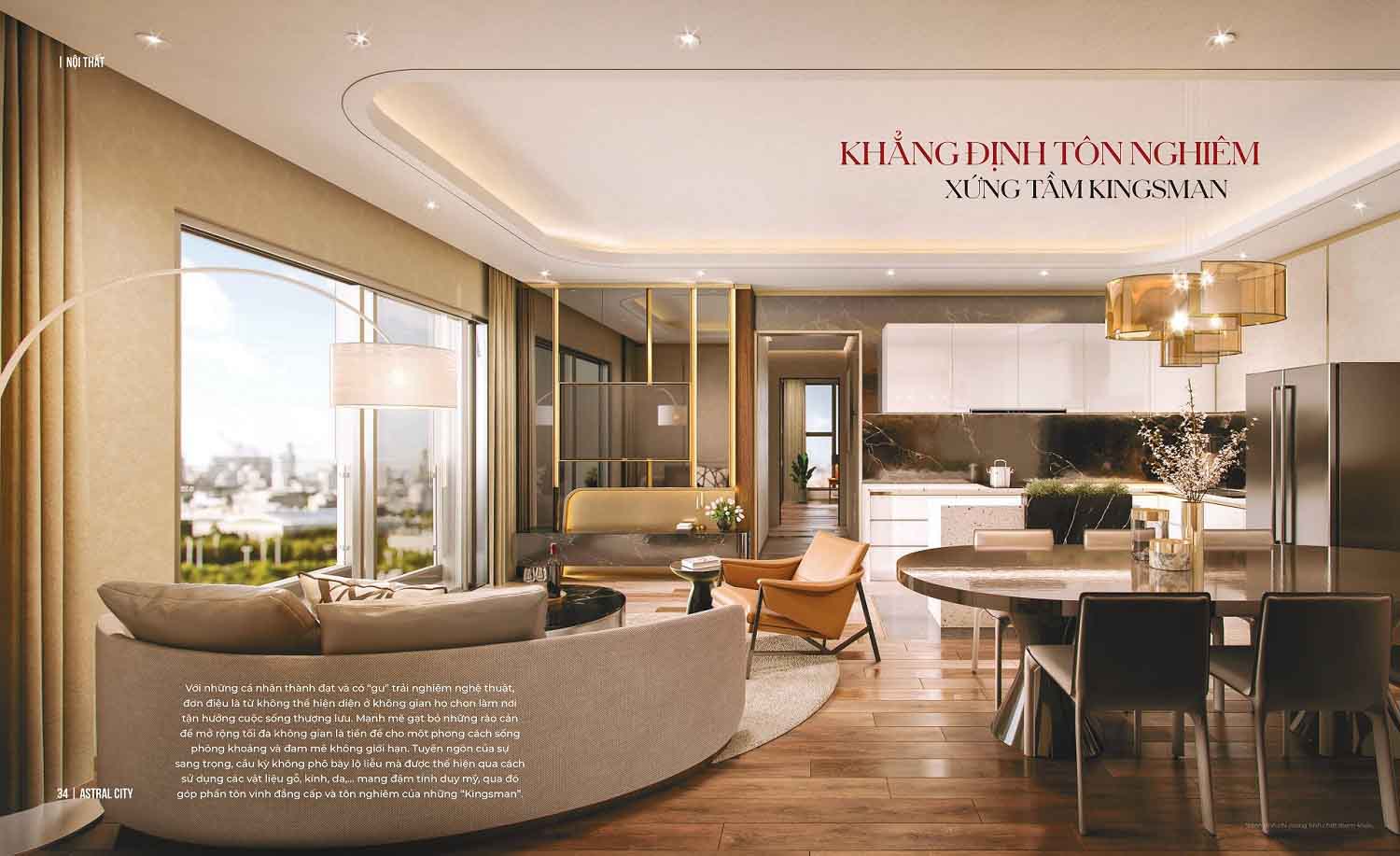 Với những cá nhân thành đạt và có “gu” trải nghiệm nghệ thuật, đơn điệu là từ không thể hiện diện ở không gian họ chọn làm nơi tận hưởng cuộc sống thượng lưu. Mạnh mẽ gạt bỏ những rào cản để mở rộng tối đa không gian là tiền đề cho một phong cách sống phóng khoáng và đam mê không giới hạn. Tuyên ngôn của sự sang trọng, cầu kỳ không phô bày lộ liễu mà được thể hiện qua cách sử dụng các vật liệu gỗ, kính, da,… mang đậm tính duy mỹ, qua đó góp phần tôn vinh đẳng cấp và tôn nghiêm của những “Kingsman”.