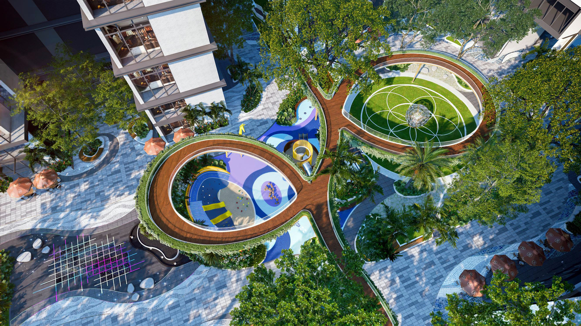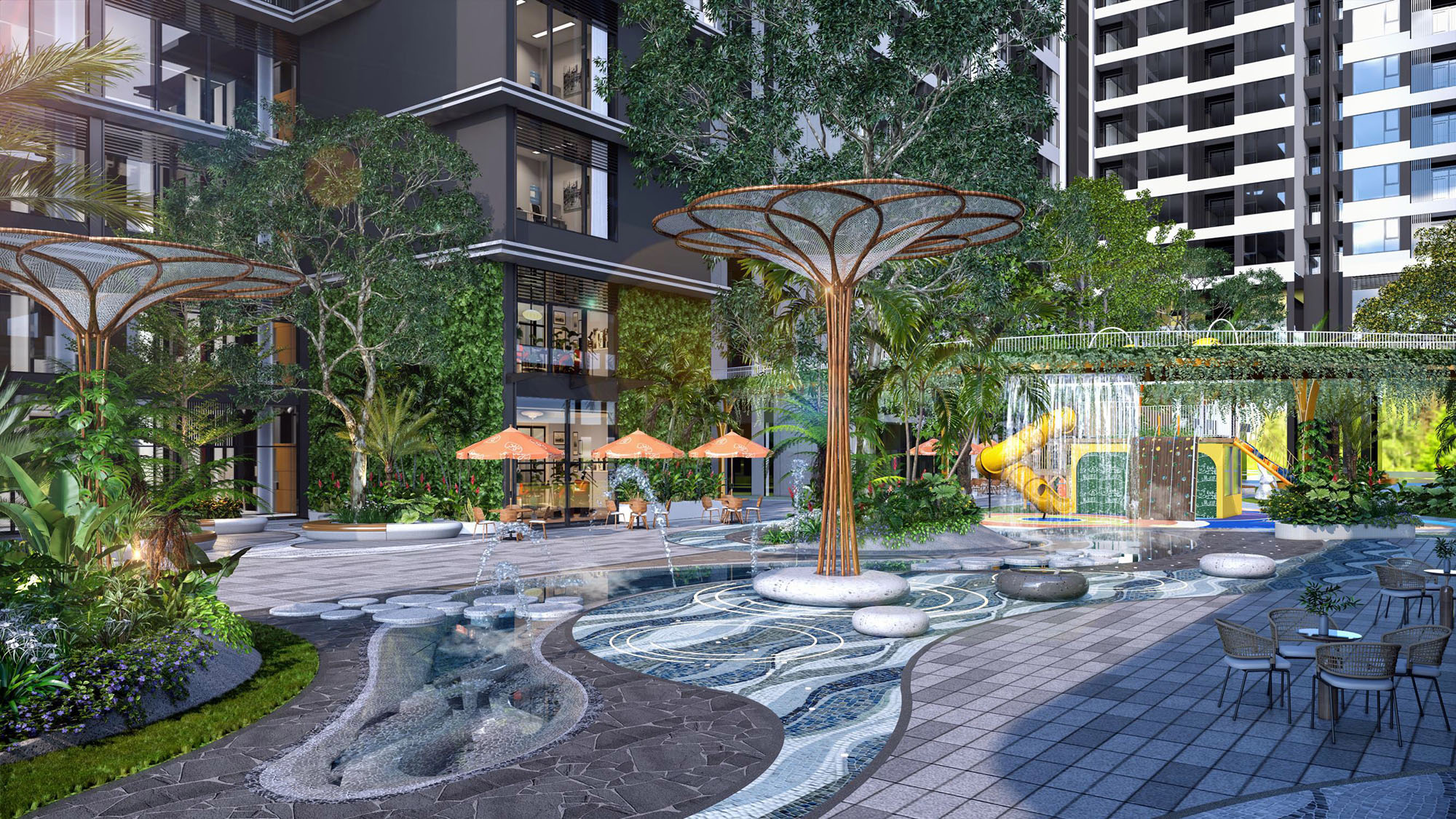 Với thiết kế phân tầng cao độ, cảnh quan tại La Pura mở ra tầm nhìn thoáng rộng, hài hòa giữa mỹ quan và công năng phục vụ. Chuỗi tiện ích được đan cài giữa những mảng xanh, xóa mờ khoảng cách giữa nhân tạo và tự nhiên. Dọc theo dòng suối nhiệt đới dài 300m, các tiện ích và cảnh quan được kết nối xuyên suốt mang đến không gian xanh tiện nghi và thư giãn.