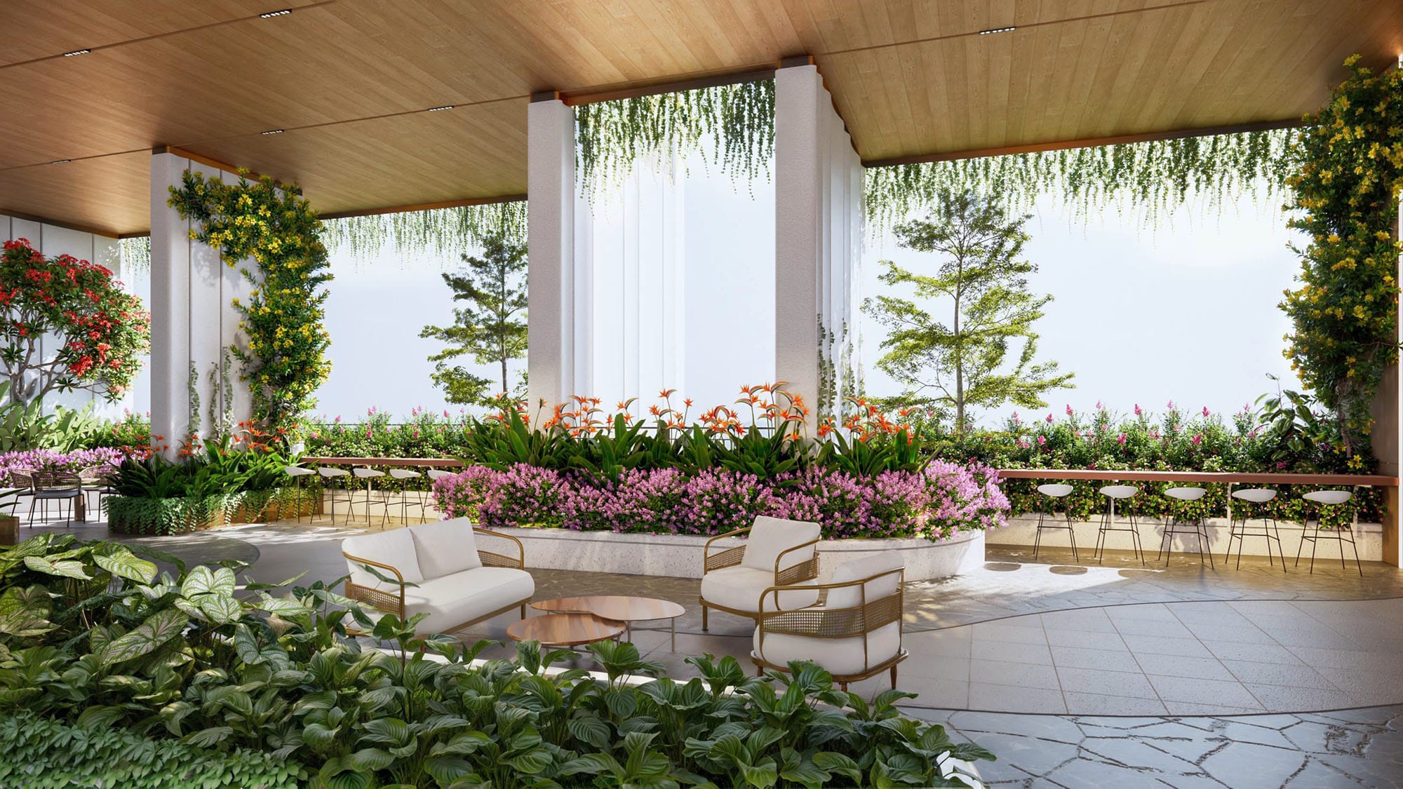 La Pura tối đa mặt tiền kính cho cư dân độc quyền sở hữu tầm nhìn đắt giá, chiêm ngưỡng vẻ đẹp phồn hoa từ vị trí trái tim của những thành phố lớn. Đồng thời, thu trọn cảnh quan xanh mát riêng biệt của công viên trung tâm và dòng suối nhiệt đới có một không hai.