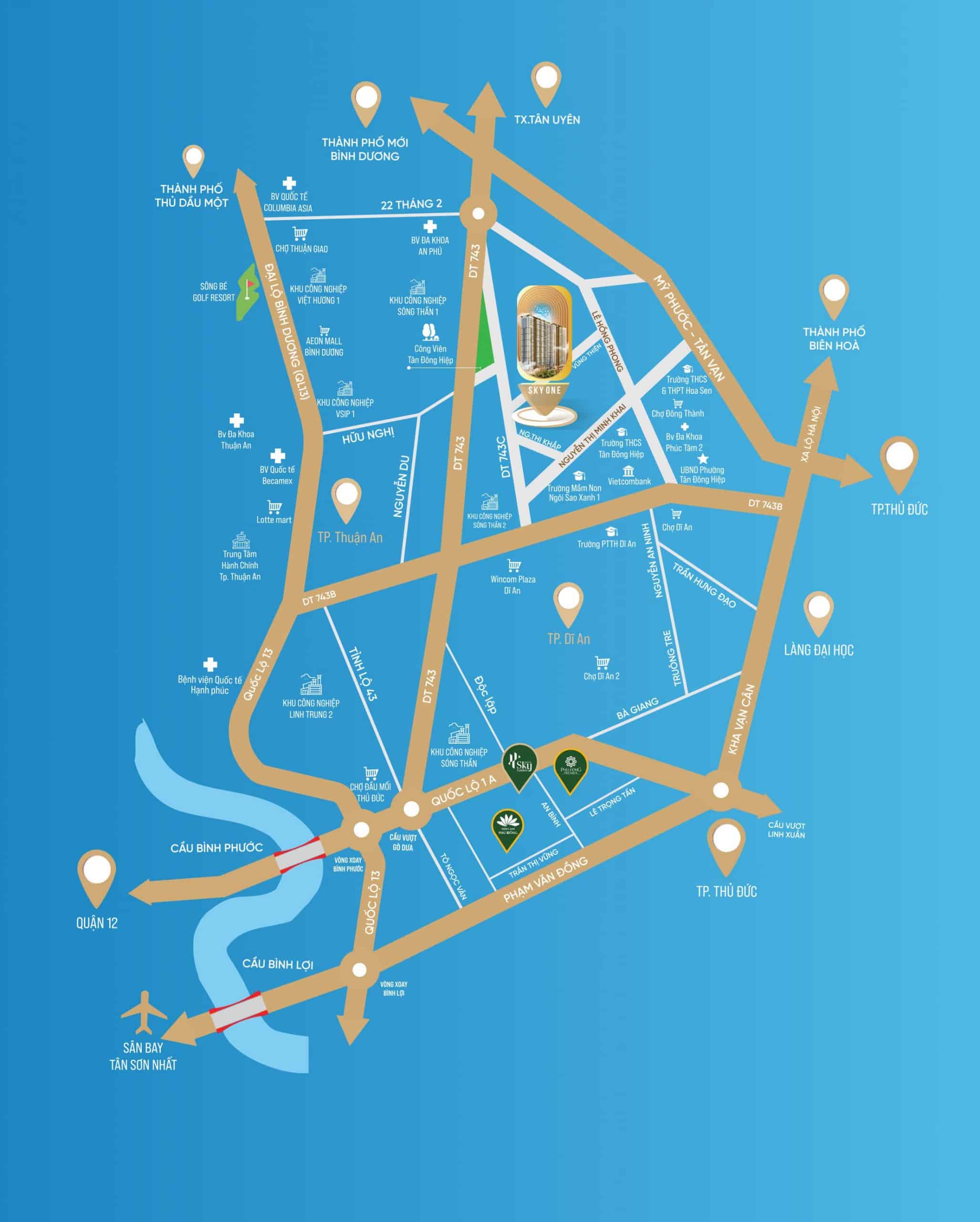- Nằm ngay giao lộ DT743C và Vũng Thiện, dễ dàng kết nối đến các khu vực trọng điểm của thành phố Dĩ An, thành phố Thủ Đức và các tỉnh lân cận.
