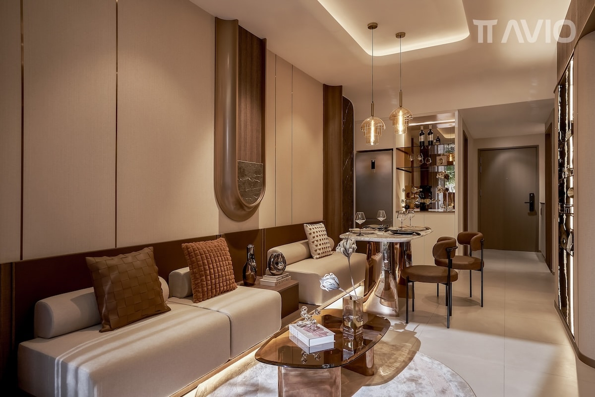 ⇒ Bước vào không gian sống hoàn toàn mới, nơi sắc nâu mocha mousse – gam màu cổ điển và thanh lịch – trở thành trung tâm của cảm xúc. Kết hợp ánh sáng vàng dịu nhẹ, vật liệu gỗ tự nhiên và những đường nét thiết kế mềm mại, căn hộ mang đến sự sang trọng và ấm áp, đáp ứng tối đa nhu cầu tìm kiếm sự thoải mái và yên bình trong cuộc sống.
